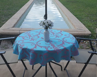 Round Fitted Tablecloth With 2 Umbrella Hole And Etsy